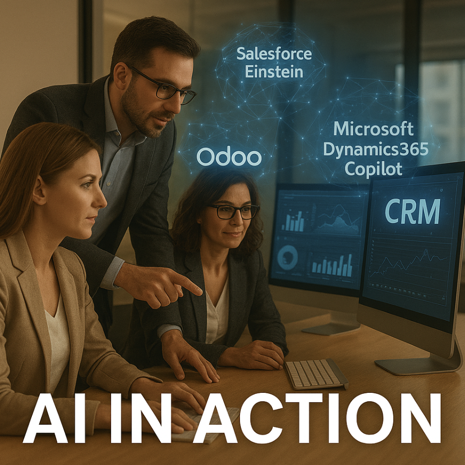 | Next Best Action/Offer Recommendation | Based on real-time customer data (web browsing, recent purchases, service history), AI suggests the optimal action a sales rep should take or the specific product/service to offer during a live interaction. | Salesforce Einstein Sales Cloud: Provides “Next Best Action” recommendations. Microsoft Dynamics 365 Copilot: Gives context-sensitive guidance and next-best-step suggestions. HubSpot: Uses workflows and AI data to suggest the next task (e.g., call, email) for specific deal stages. Odoo: AI-driven automation rules can trigger customized follow-up activities or actions based on lead criteria or deal progression. |